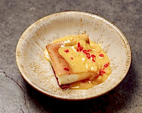 Чизкейк Сан-Себастьян/ соус манго/ чили